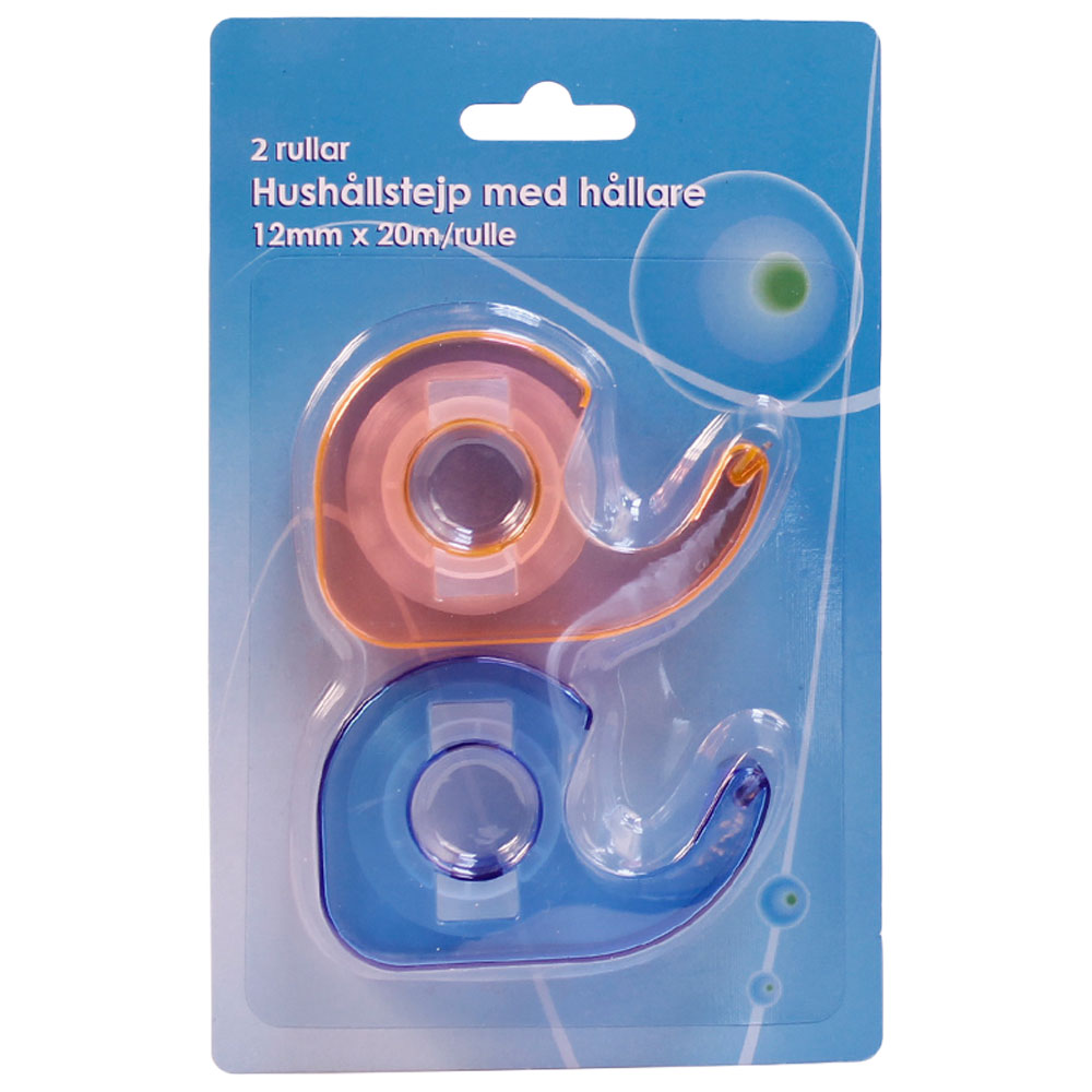 Tejprulle med Hållare 2-pack består av 2st transparent tejphållare med medföljande tejprullar. Säljes i osorterade färger, d.v.s att vi slumpmässigt väljer ut färgerna på tejphållarna.