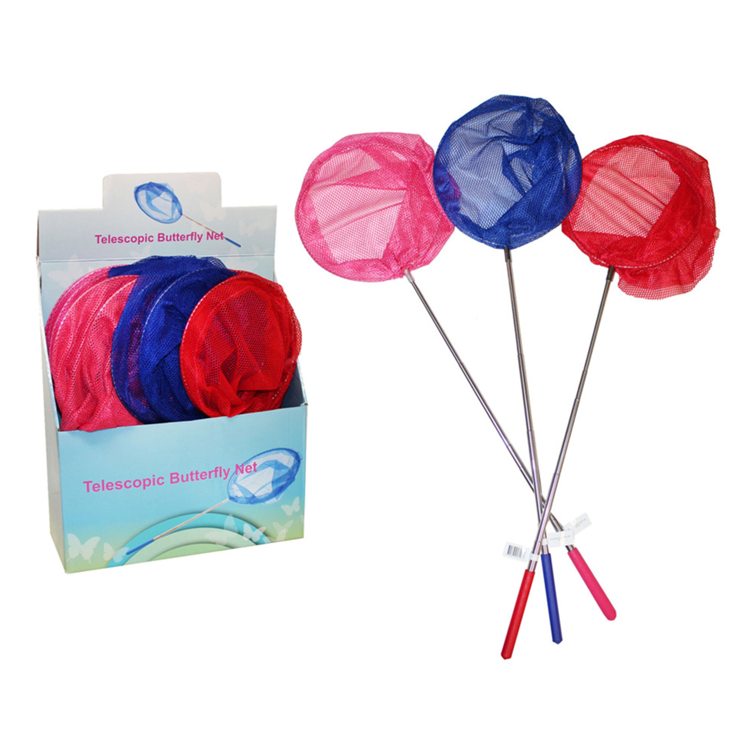 Teleskopisk Fjärilshåv mäter 38 cm men kan fällas ut och bli 85 cm. Hoven är tillverkad av metall och plast. Säljs styckvis och osorterade, det betyder att det blir en överraskning vilken färg du får!