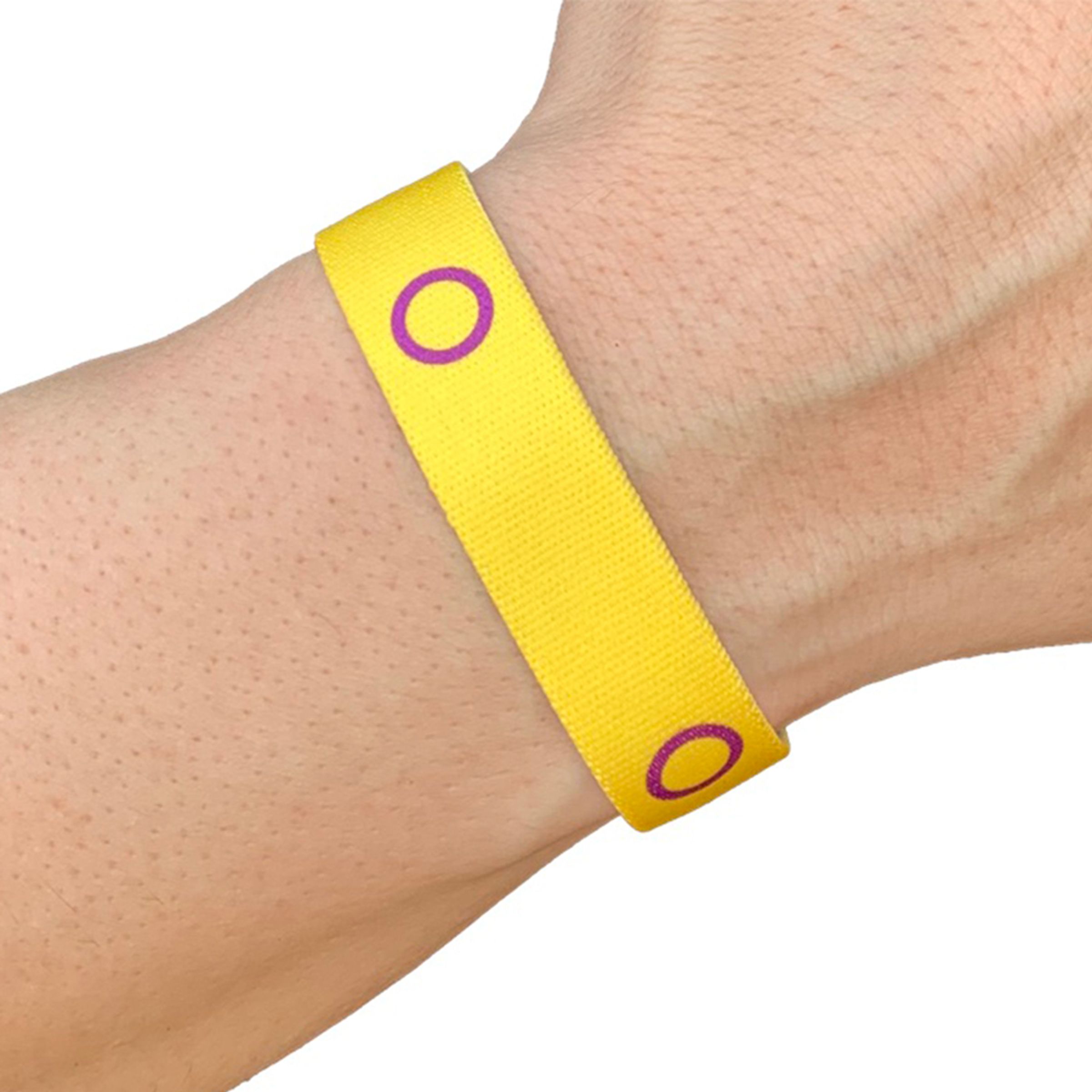 Intersex Textilarmband är ett armband av resår i intersex flaggans färger som är ett väldigt praktiskt armband i textil. Töjbart och passar såväl stora som som mindre handleder.