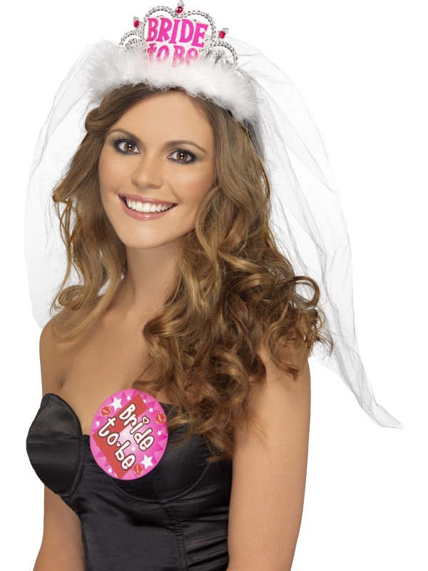 Fira möhippa med en snygg bride to be tiara med slöja, en både kul och fin accessoar och utklädnad som passar perfekt som tillbehör till en riktigt schysst outfit och bride to be klädsel, denna fina krona och brudslöja drar garanterat blickarna till sig.