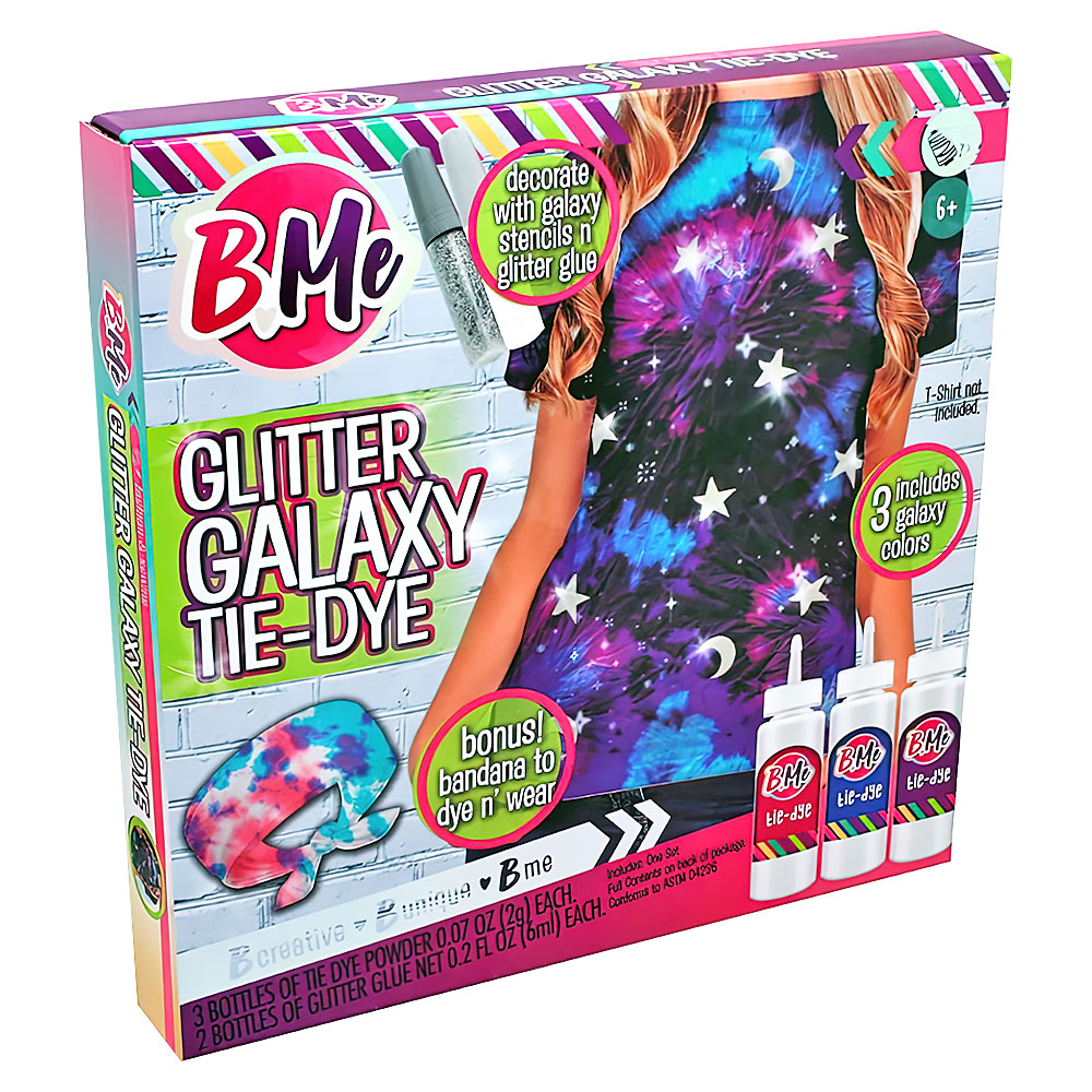 Ge nytt liv till en t-shirt du tröttnat på med detta tie dye galaxy kit som kommer i blå, lila och rosa färg samt glitter som gör att du kan skapa en galax, detta set kommer dessutom med en bonus bandana som du kan matcha med dina andra kreationer!