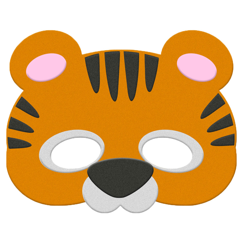 Tigermask Barn omfattar en söt tigermask för barn. Masken har hål för ögonen och hålls på plats med ett elastiskt band runt huvudet. Den är tillverkad av mjukt filtmaterial och är ca 14 cm hög samt 18 cm bred.