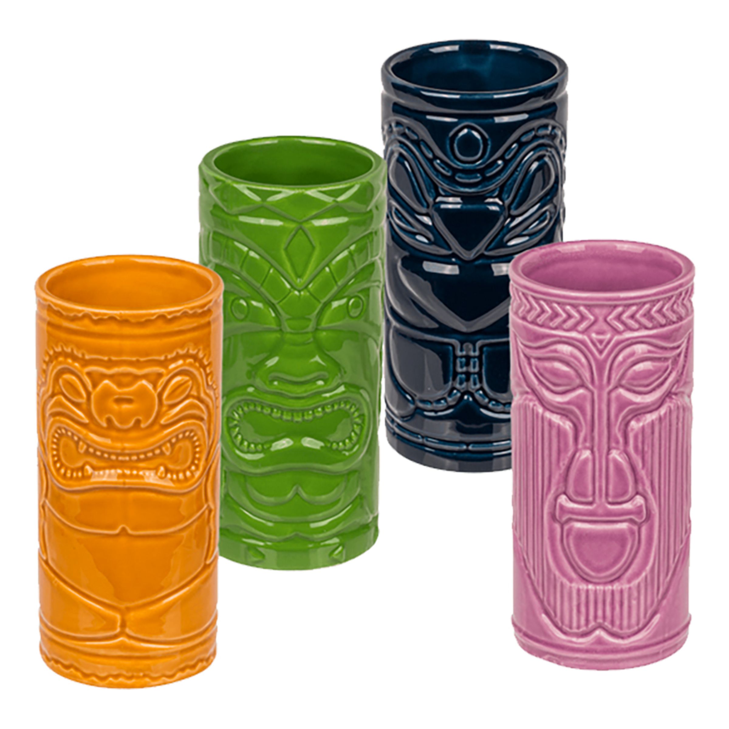 Tikimugg i Keramik inkluderar en mugg Tiki-motiv som finns i färgerna grönt, gul, blå och rosa/lila – vilken färg du får blir en överraskning. Perfekt att använda till att servera fruktiga drinkar på Hawaii-temat!