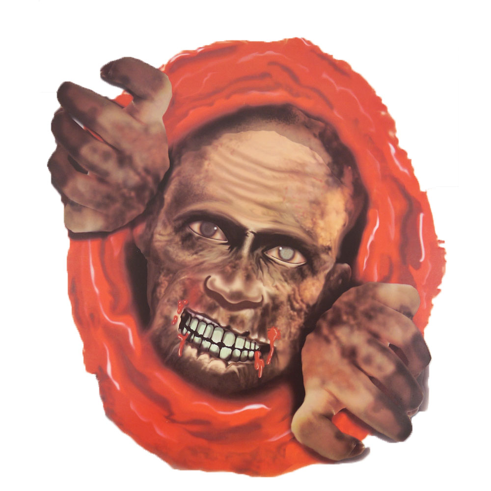 Toalett Dekoration Zombie består av en stor toalett dekoration som föreställer en läskig zombie. Dekorationen är självhäftande. Tillverkad av plastfilm.