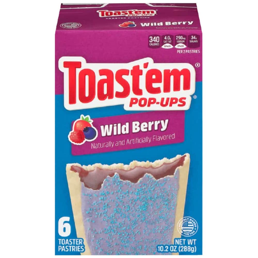 Toast’em Frosted Wild Berry är en fruktig bakelse fylld med en blandning av vilda bär och toppad med ett frostigt lager. Perfekt för en snabb frukost eller som ett sött mellanmål när du behöver en fräsch bärsmak. Värm dem i brödrosten för en varm och smakrik upplevelse eller ät dem direkt ur förpackningen för en härligt krispig konsistens.