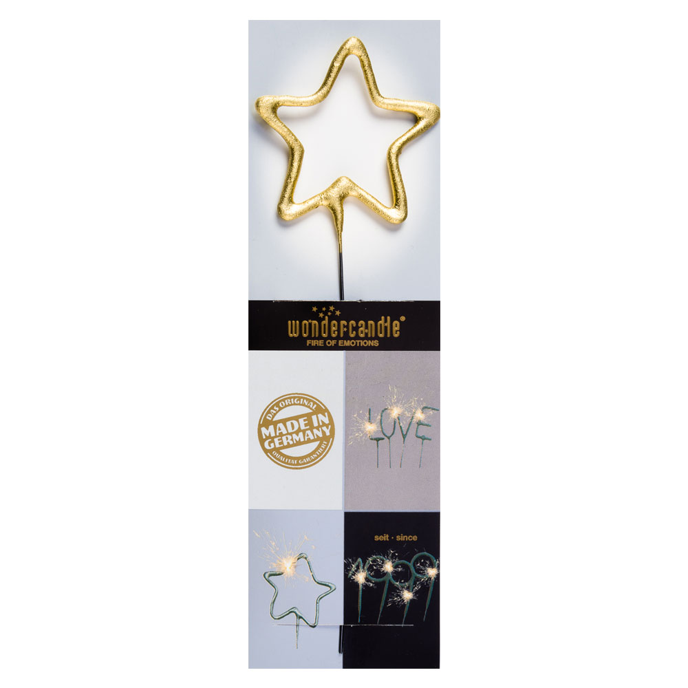 Lys upp hela kalaset med en gnistrande och sprakande stjärna! Med denna tjusiga tomtebloss i form av en guldig stjärna kan du lätt som en plätt få till en fantastisk dekoration till ditt firande. Ett riktigt snyggt tomtebloss som garanterat blir ett stämningshöjande tårtljus till exempelvis födelsedags- eller nyårstårtan.