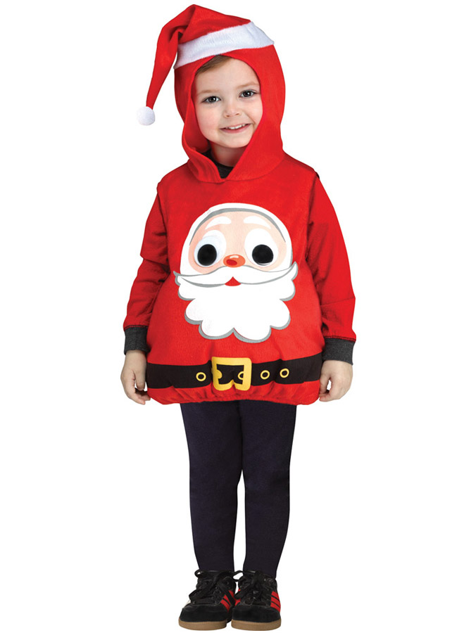 Tomtedräkt Googly Eyes Barn innehåller en mjuk ärmlös dräkt i rött med jultomte-huva, ett glatt tomte-ansikte på magen samt motiv av ett bälte. Tillverkad av 100% polyester.