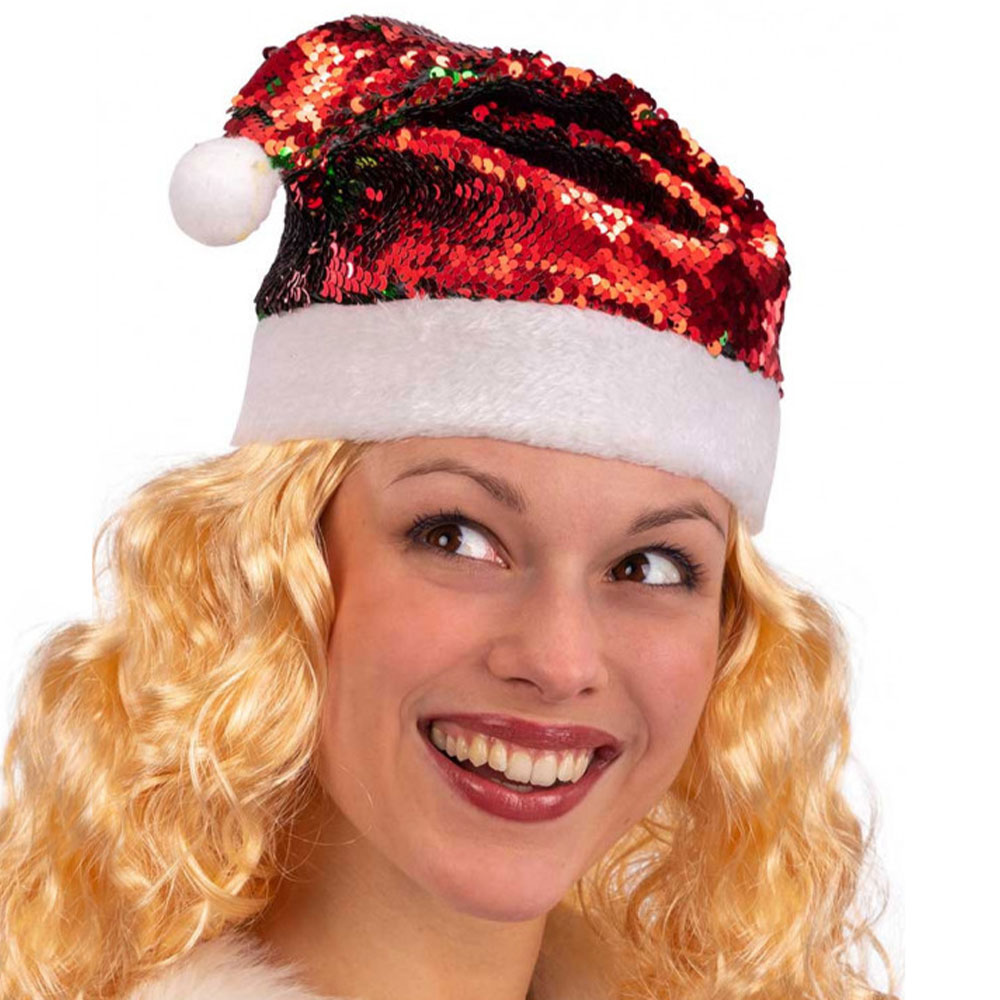 Tomteluva med Röda & Gröna Paljetter omfattar en tomteluva täckt i paljetter som är röda på ena sidan och gröna på den andra.