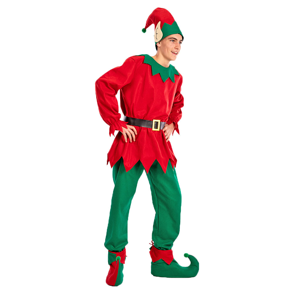 Tomtenisse Elf Dräkt omfattar en tomtenisse dräkt i rött och grönt med tillhörande detaljer. Dräkten är tillverkad i filtliknande polyester och består av en lång röd tröja med grön krage, sicksack kanter och resår vid ärmarna, gröna byxor, svart skärp med guldspänne, röd och grön luva med fastsydda nisseöron samt spetsiga skoöverdrag i rött och grönt med tofsar längst ut. Dräkten passar vuxna.