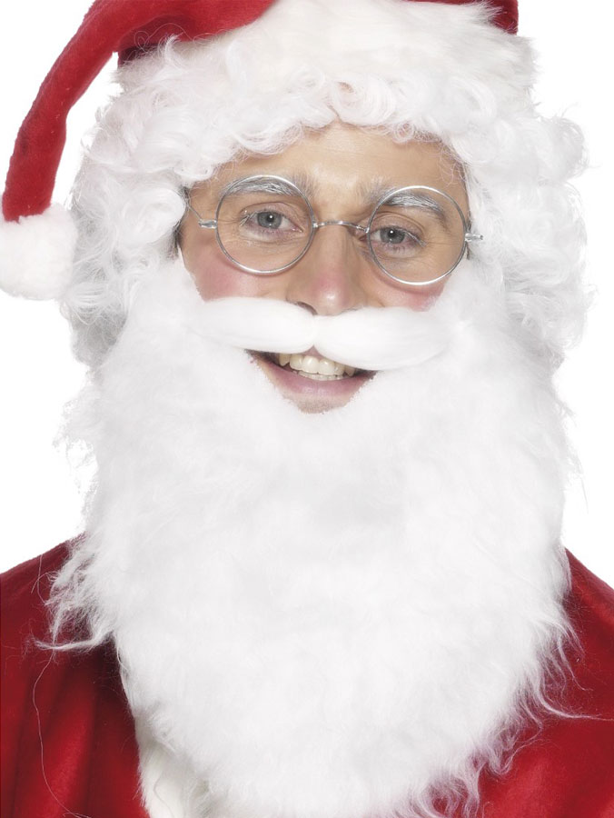 Tomteskägget omfattar ett vitt skägg som är både brett och långt med fastsatt mustasch. Tomteskägget fästs enkelt kring huvudet med inkluderande resårband.