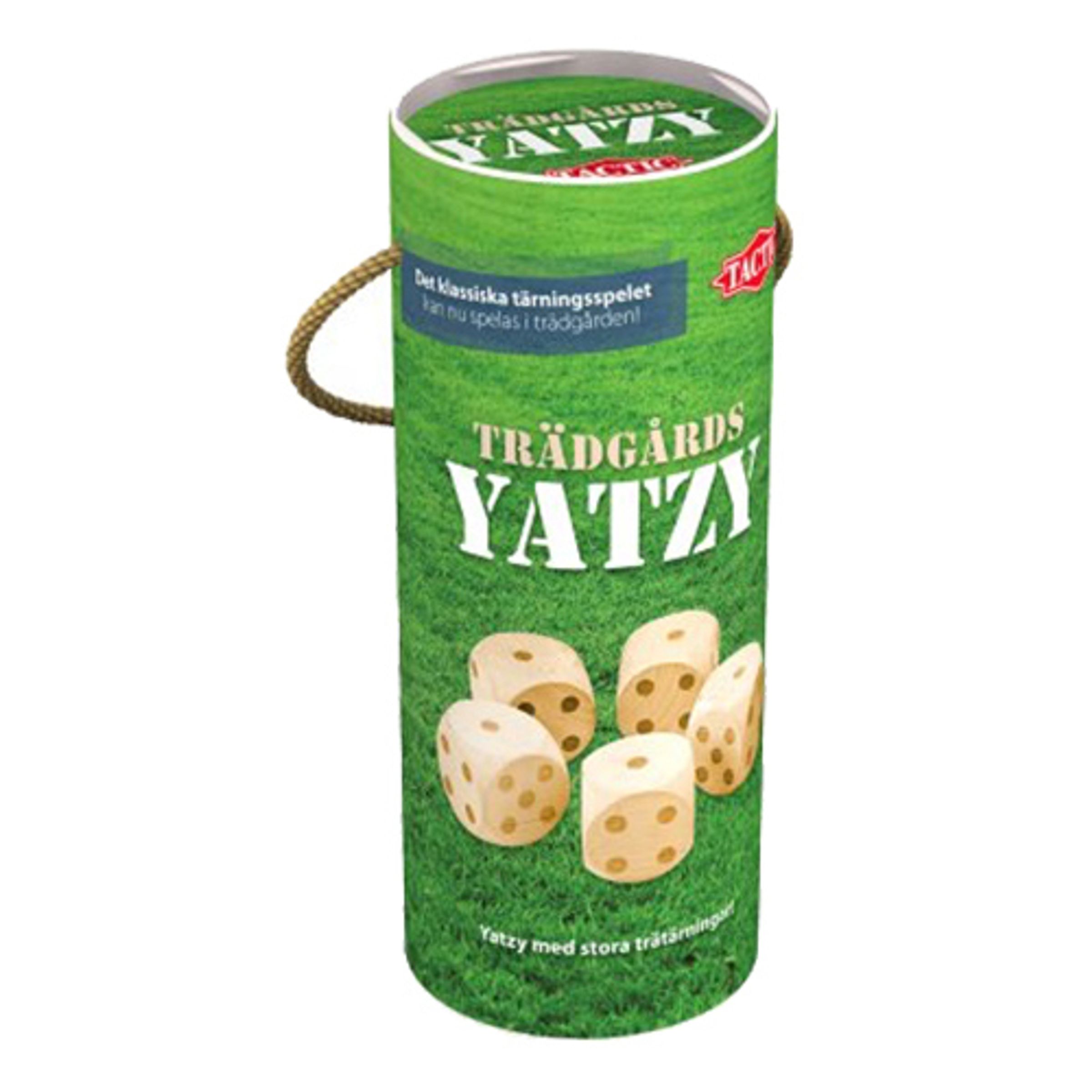 Trädgårds Yatzy XL är det klassiska Yatzy-spelet fast i ett större format. Levereras komplett med tärningar, block och allt i en praktisk förpackning med handtag. Perfekt som utespel i sommar!