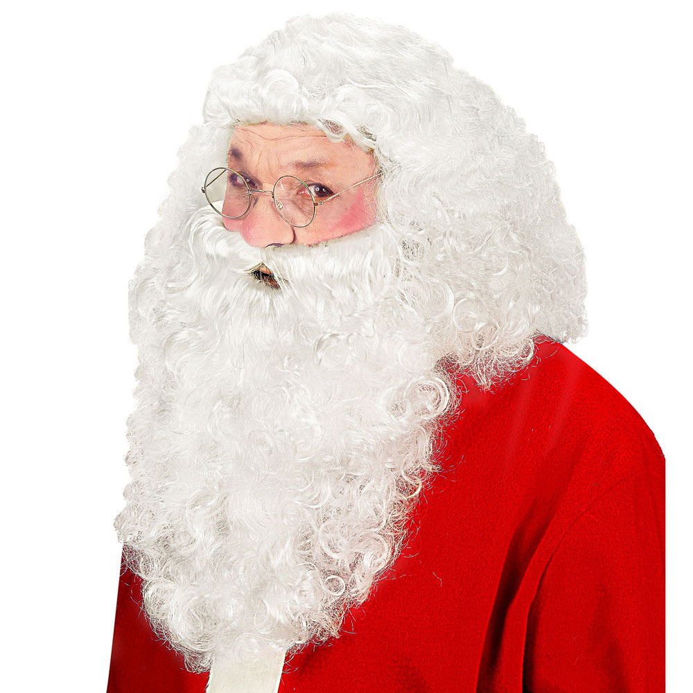 Traditionellt Tomteskägg och Peruk innehåller en vit tomteperuk och ett vitt tomteskägg i en naturlig och verklighetstrogen stil.