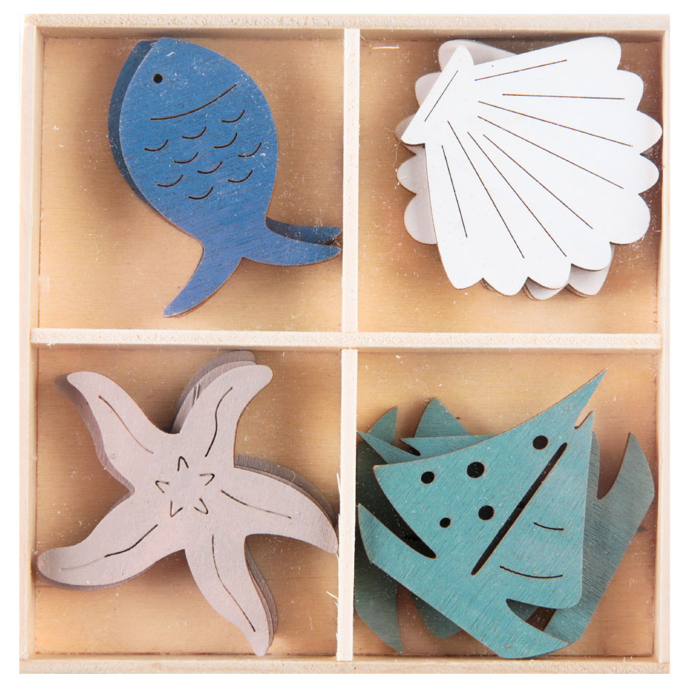 Önskar du en vacker dukning som för tankarna till havet så är denna trä-konfetti något för dig. Med dessa små trädekorationer kan du snyggt pryda dukningen med små segelbåtar, sjöstjärnor, fiskar och snäckskal. Sprid ut de olika havsfigurerna över dukningen och få till en riktigt fin bordsdekoration. Ett utmärkt val för dig som vill dekorera i havstema inför nästa fest eller kalas.