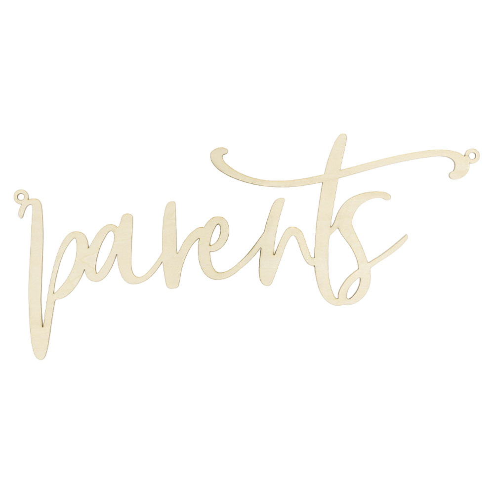 Dekorativ träskylt i form av texten "parents" att hänga på föräldrarnas stolsrygg inför det stora bröllopsfirandet. Den blir en vacker och utstickande detalj som tar bröllopspyntningen till nästa nivå. Kort sagt en riktigt fin träskylt som passar perfekt för dig som söker en festlig stol-dekoration till bröllop.