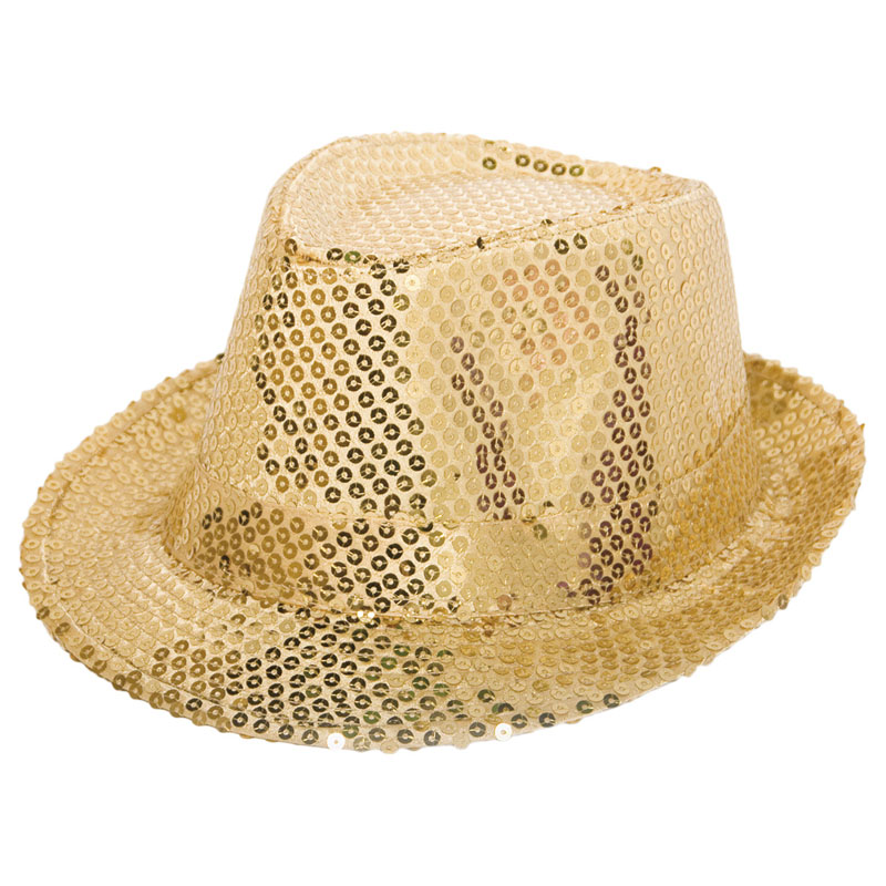 En superfestlig trilby hatt med guldiga paljetter som gör dig redo för maskerad party och fest, en rolig kalashatt och huvudbonad som garanterat kommer dra blickarna till sig. Denna trilbyhatt är en både läcker och skojig guldhatt och paljetthatt som sticker ut bland andra roliga fest hattar, en top notch partyhatt och festhatt till årets kalas.