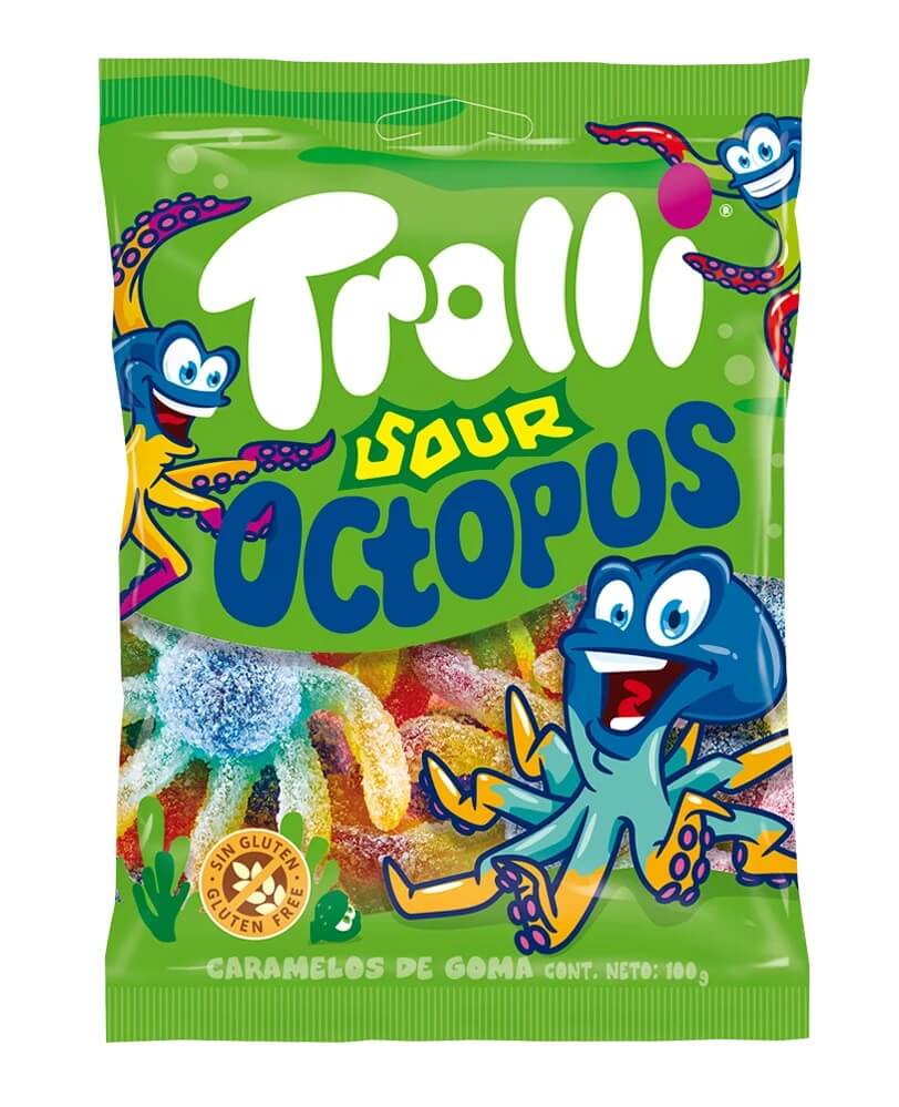 Trolli Sour Octopus är en lekfull och sur godisupplevelse som kommer att få dina smaklökar att dansa! Dessa färgglada bläckfiskar är inte bara mjuka och gummiga, utan också fullproppade med en härlig syrlig smak som kittlar i munnen. Perfekta att dela med vänner under filmkvällen eller njuta av på egen hand när du vill ha något riktigt roligt och smakrikt!