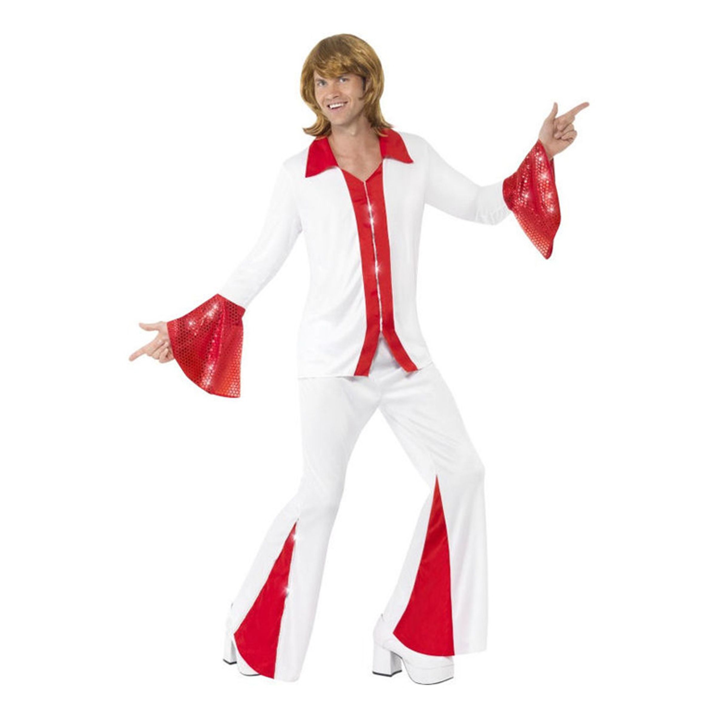 Ta dig tillbaka till 70-talets glittriga popvärld med utsvängda byxben i denna häftiga Super Trooper Maskeraddräkt!