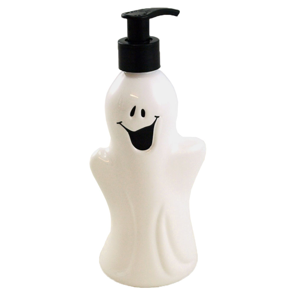Tvålpump Spöke med Chokladtvål omfattar en tvålpump i form av ett spöke fylld med flytande handtvål med chokladdoft. Pumpen har en volym på ca 300 ml och är ca 19 cm hög.