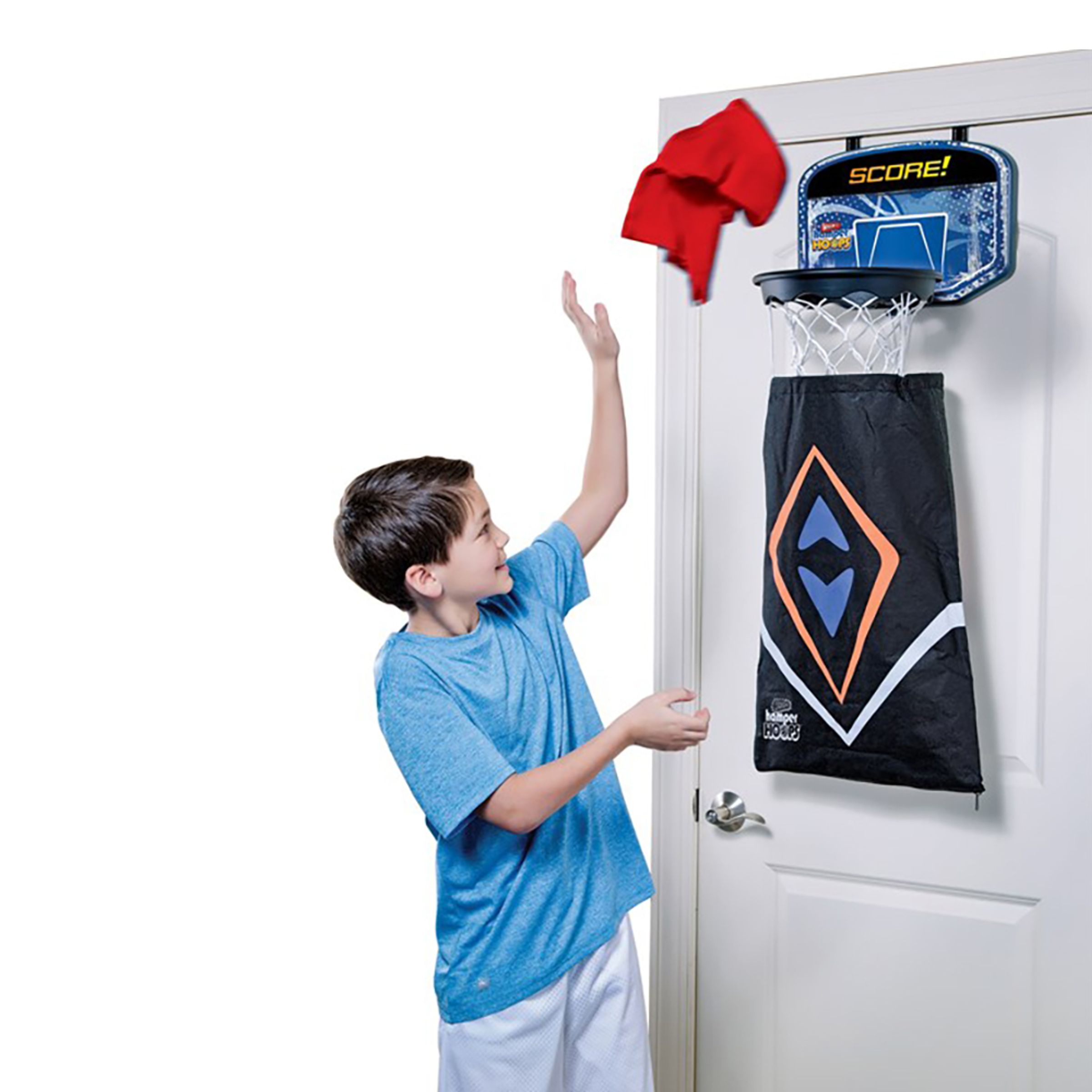 Stökigt i ungarnas rum? Nu är det slut på strumptäckta golv och drivor av smutstvätt som når ända upp till taknocken. Den här finurliga basketkorgen har en tvättkorg hängandes under sig, vilket i sin tur gör att det blir både roligt och utmanande att ta reda efter sig! Smart, kul och pricksäkert!