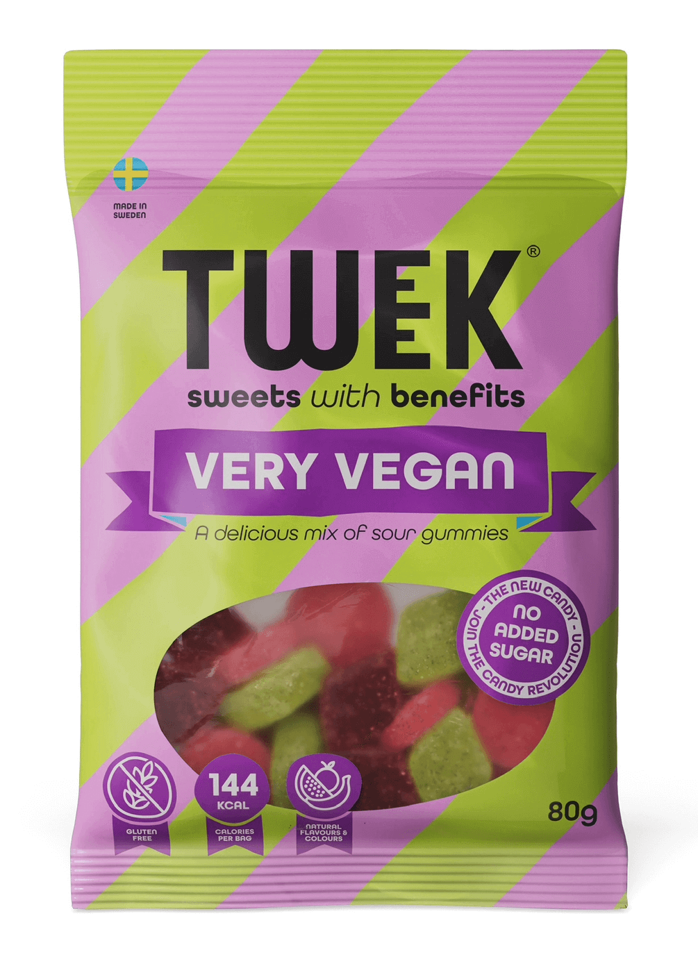Tweek Very Vegan är en påse med veganskt godis. Very Vegan innehåller godis med smaker av lime, körsbär och smultron.