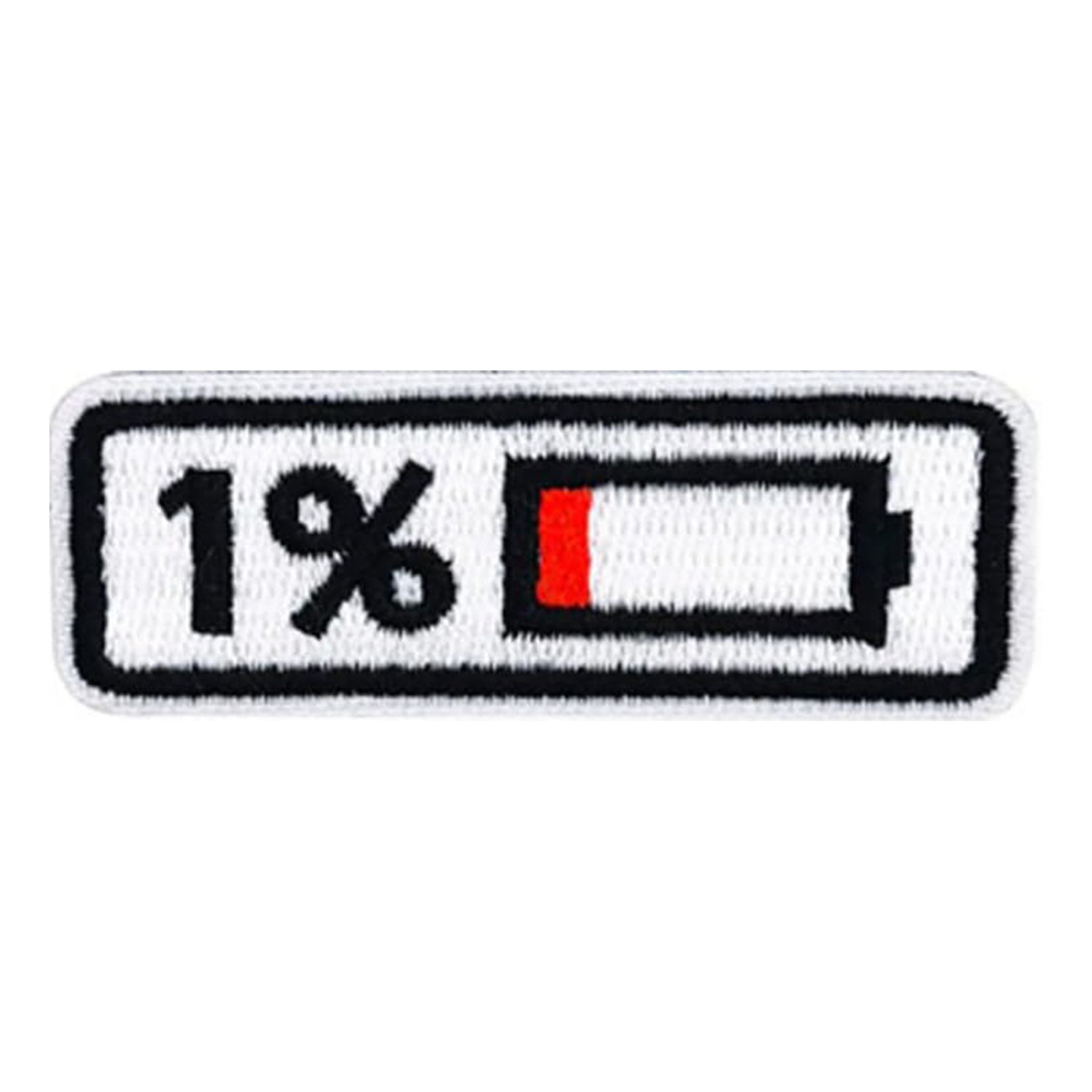 Tygmärke 1% Batteri är en patch som kan fästas på alla slags tyger; din väska, jacka, keps, tröja eller annat plagg eller accessoar som du vill pimpa och göra mer personlig. Tygmärket är i broderat utförande som gör den extra snygg.