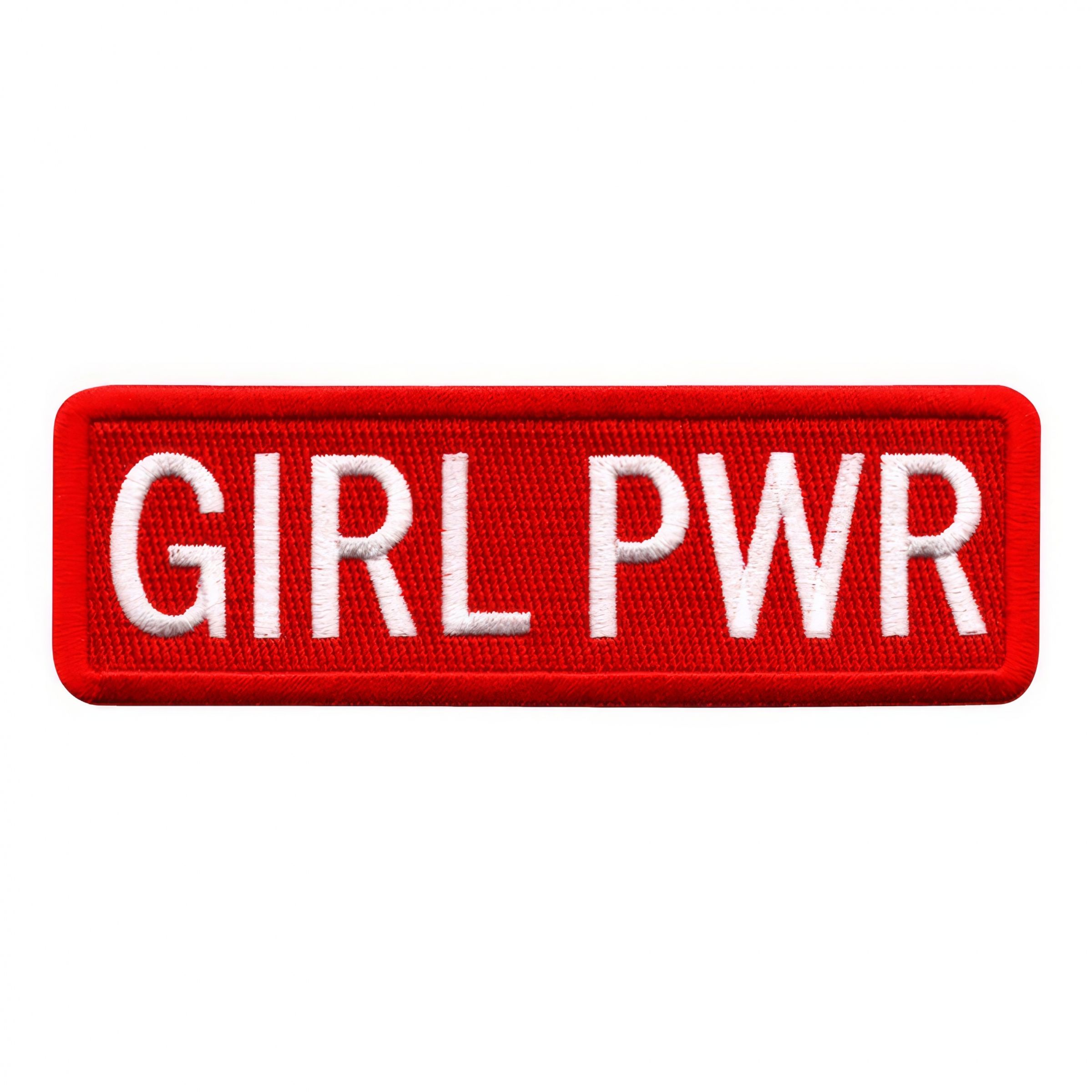 Tygmärke Girl Pwr är ett rektangelformat tygmärke i röd färg. På märket står det "GIRL PWR" med vita bokstäver. Du kan enkelt sätta fast märket på alla klädesplagg och accessoarer som är gjorda av textil.