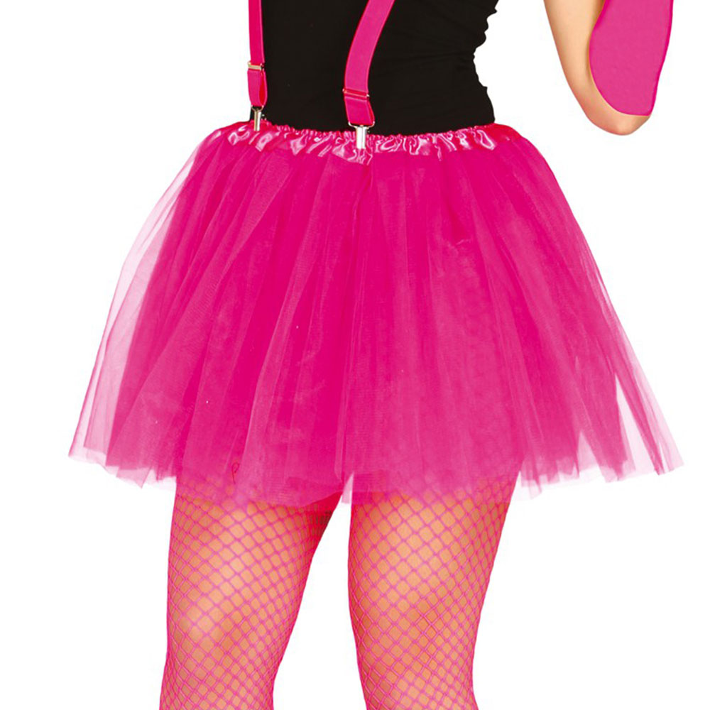 Tyllkjol Neon Fuchsia Vuxen 40 cm omfattar en tyllkjol med tre lager i neon fuchsia. Kjolen har även resår i midjan.