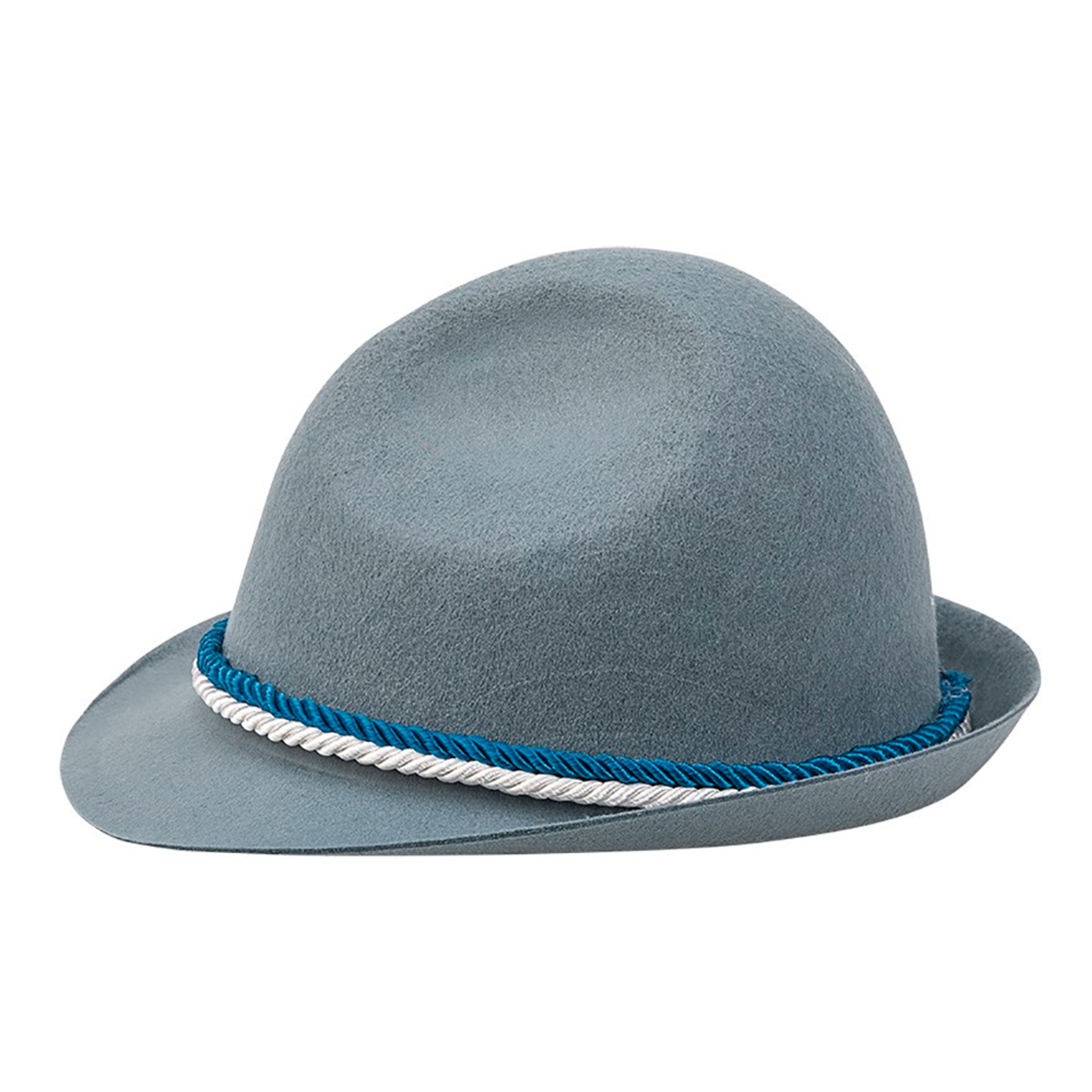 Tyrolerhatt tysk är tillverkad i grått filttyg och bärs med fördel vid livets alla stunder.