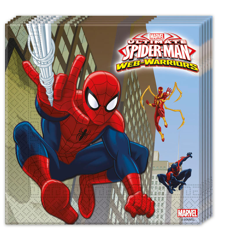 Ultimate Spider-Man Web Warriors Servetter omfattar ett 20-pack pappersservetter med häftigt Spiderman motiv. Servetterna har två lager och mäter ca 33 x 33 cm utvikta.
