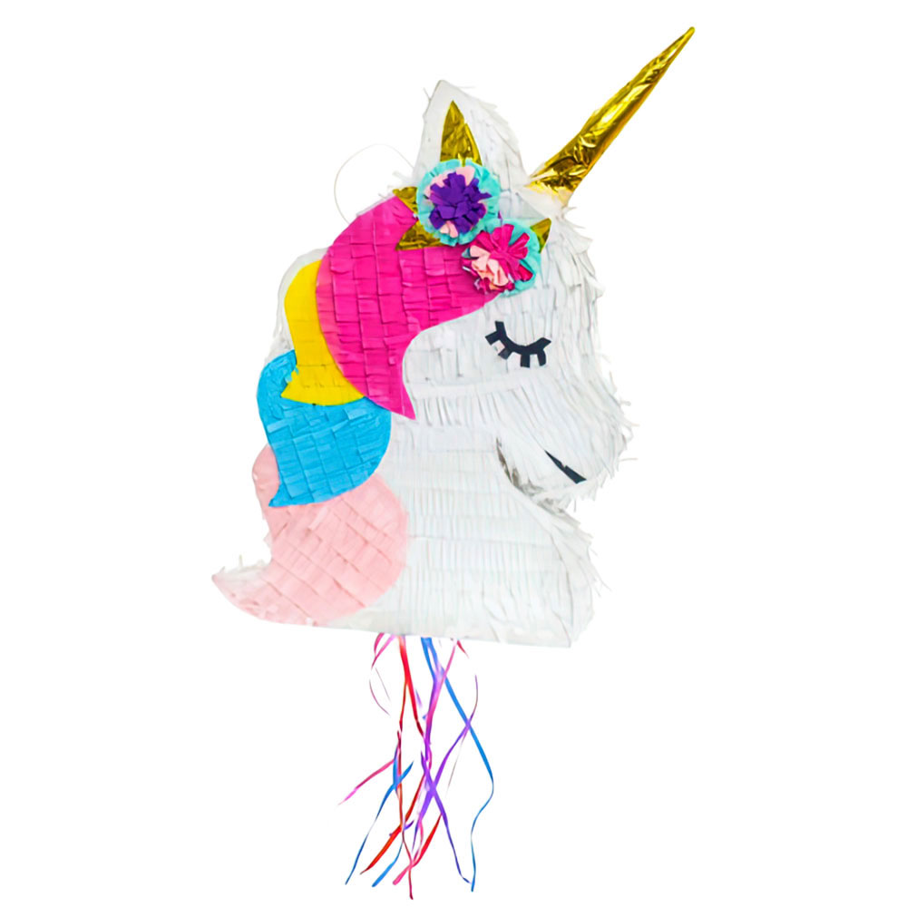Unicorn Pinata omfattar en vit pinata i form av en enhörning med flerfärgad man och guldigt enhörningshorn samt färgglada snören nedtill. Pinatan fylls från en öppning på sidan och öppnas med ett av de hängande snörena. Enhörningen är tillverkad av papp och är ca 41 cm hög, 26 cm lång samt 7 cm bred. Fyllning ingår ej.
