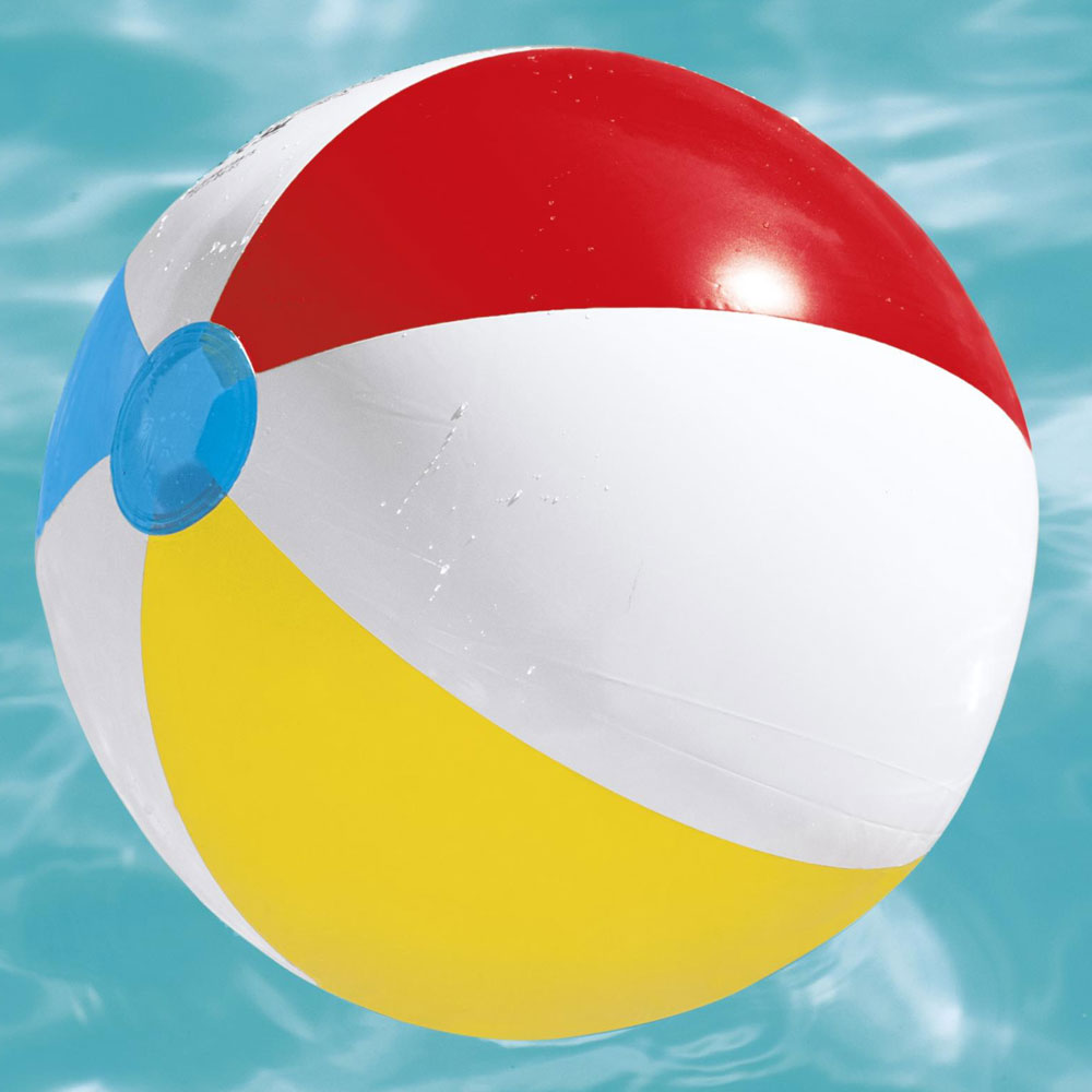 – Uppblåsbar färgglad badboll.
