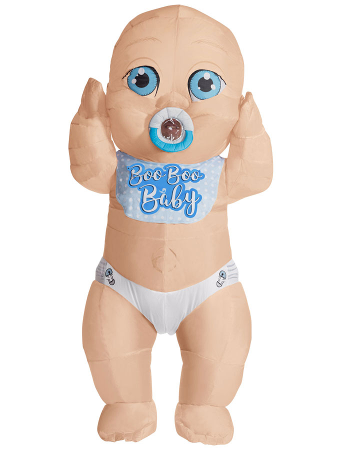 Uppblåsbar Big Baby Pojke Maskeraddräkt är en stor dräkt som blåses upp till en jätte bebis. Bebisen har blåa ögon, napp, haklapp med texten "Boo Boo Baby" och en blöja. Dräkten blir över 2,4 meter när den är uppblåst.