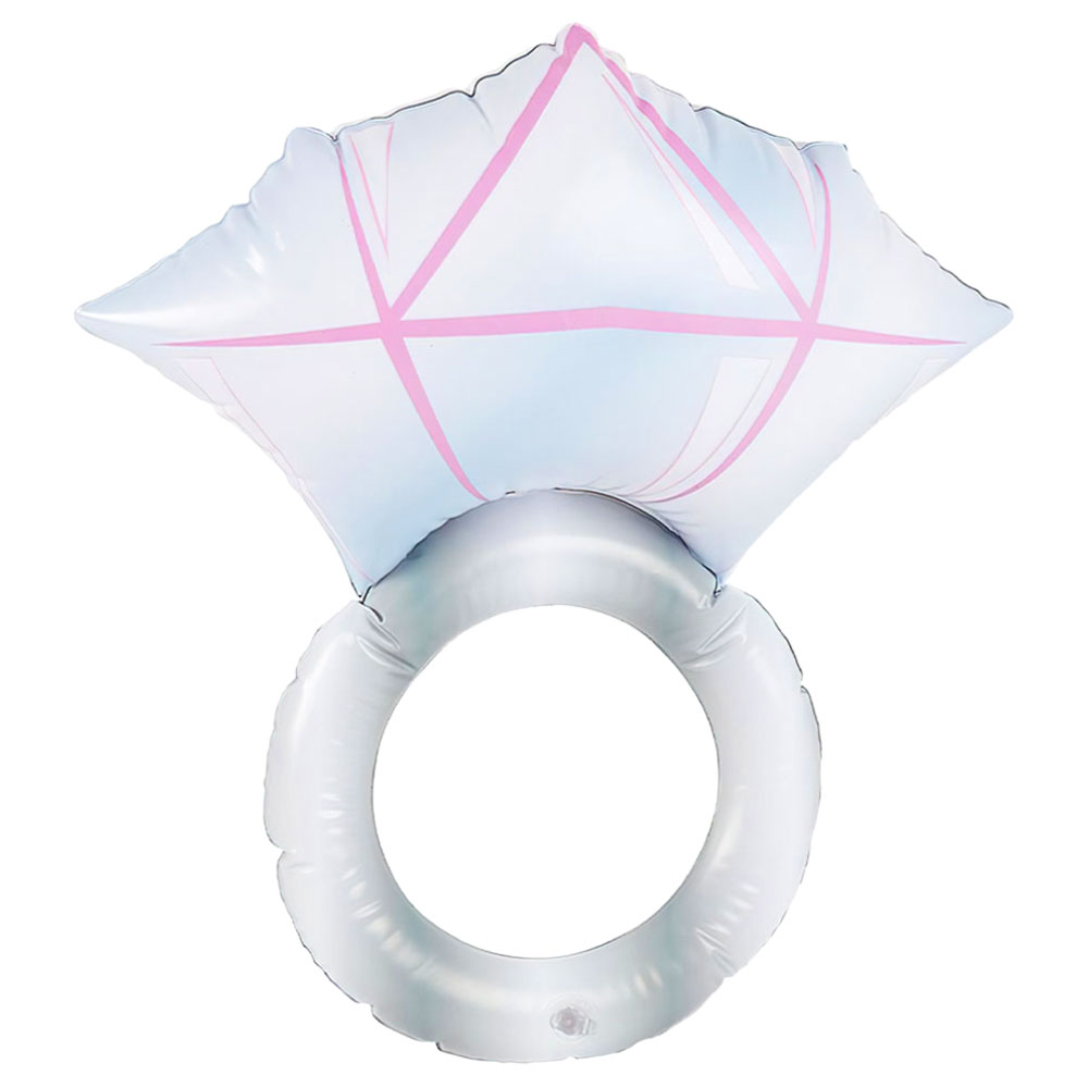 Uppblåsbar Diamantring omfattar en uppblåsbar ring i silver med en diamant i vitt och rosa. Ringen blir ca 50 cm stor när den är uppblåst.