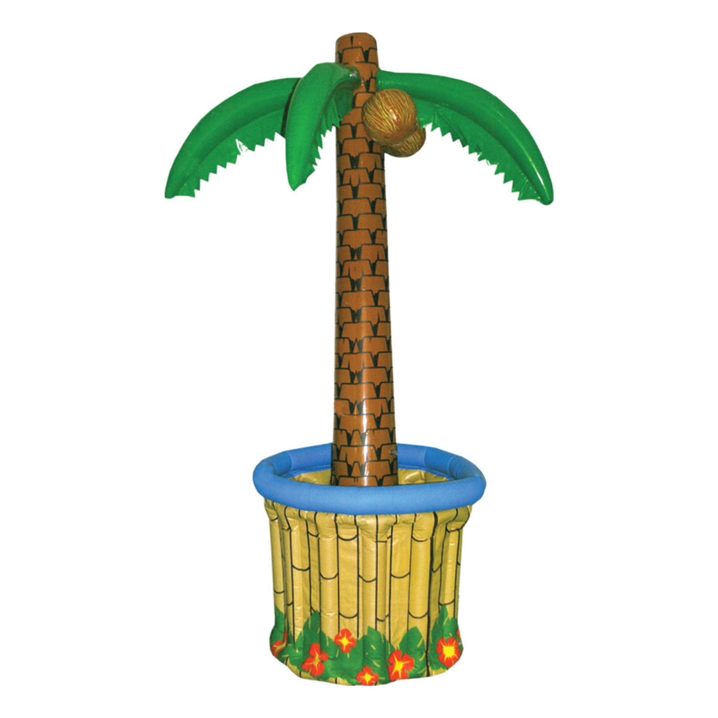 Uppblåsbar Palmkyl Stor är festens mittpunkt där du kan garanterat hålla din dryck välkyld i gott förvar. Häll bara en massa isbitar i kylförvaringen och du kan avnjuta din dryck kall och härlig under hela kalaset. Idealisk till Hawaiimaskerader och grillfester eller varför inte pimpa uteplatsen i sommar och göra grannarna avundsjuka?