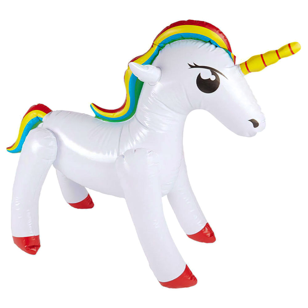 Behöver du en stor enhörnings-dekoration att ha på kalaset, eller ska du kanske rida in på en på kalaset? I båda fallen är denna uppblåsbara enhörning perfekt i alla lägen. En tålig enhörning som kan tas med på äventyr i alla dess former.