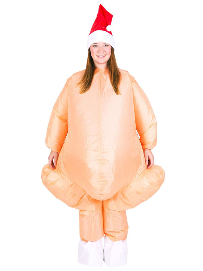 Om du inte vill chansa på att någon annan klär ut sig till samma som dig, eller bara vill klä ut dig till något lite annorlunda så kan denna humoristiska kalkondräkt vara det perfekt valet för dig! En rolig uppblåsbar kalkondräkt till både maskerader, julfester eller andra roliga stunder. Med denna uppblåsbara maskeraddräkt i form av en kalkon redo för middagsbordet kommer du garanterat att få hela festen att brista ut i skratt!