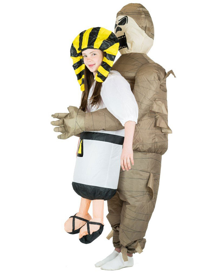 Den gamla mumien har tagit sig ur sin grav och har nu tagit dig, självaste faraon som gisslan! Med denna humoristiska uppblåsbara maskeraddräkt får du enkelt till illusionen av att en mumie bär runt dig i hans armar. En enkel och rolig uppblåsbar mumie-dräkt som blir en perfekt utklädnad till exempelvis Egypten maskeraden eller Halloweenfesten.