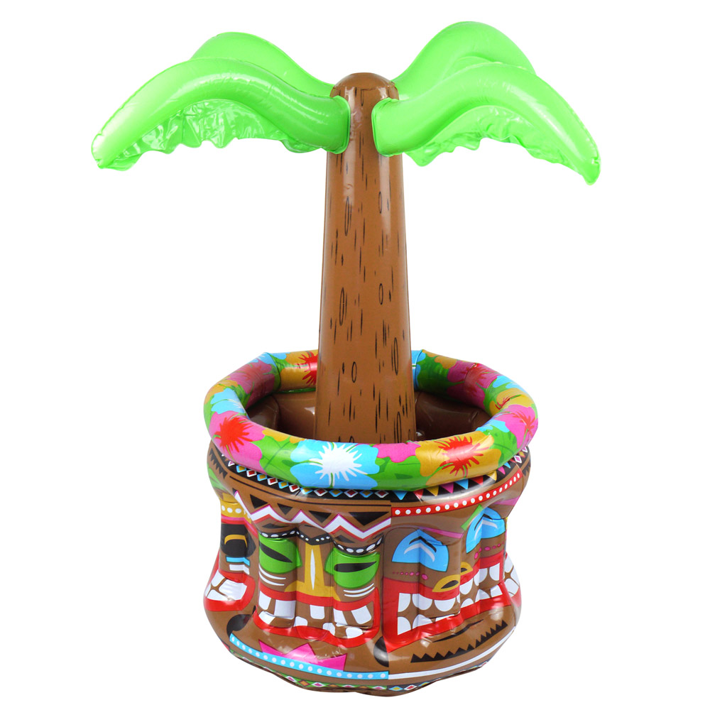 Uppblåsbar Palmkyl består av en uppblåsbar kyl som föreställer ett festligt palmträd. Blås upp kylen, fyll den med is och sen är det bara att börja kyla din dricka.