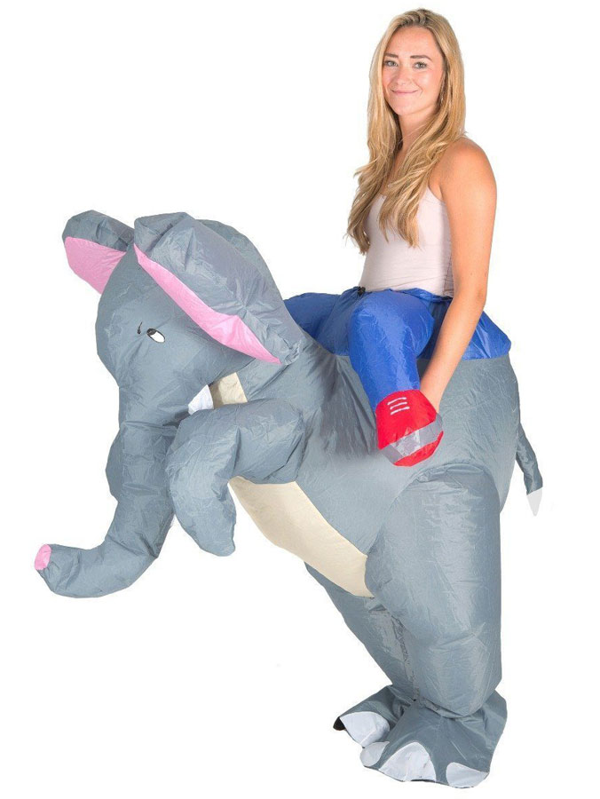 Rid in på maskeraden på en söt elefant! Med den här uppblåsbara elefant maskeraddräkten får du riktigt enkelt till illusionen av att du rider runt på en livs levande elefant. En fantastisk uppblåsbar maskeraddräkt som utan tvekan blir en riktigt svårslagen elefant utklädnad.
