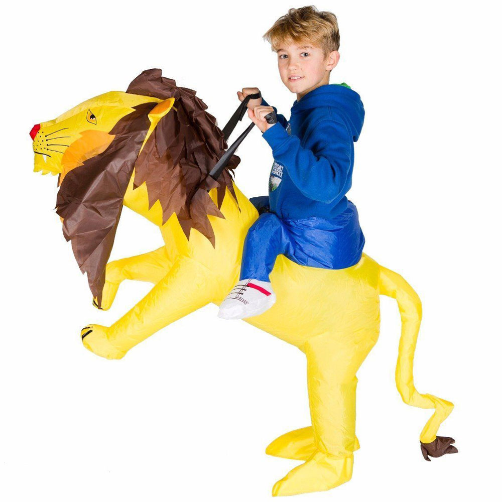 Få en schysst lejon-kompis att gå med till festen med hjälp av denna super snygga lejon utklädnad! Ta en härlig ridtur på savannen eller bli maskeradens konung med denna super häftiga uppblåsbara lejon maskeraddräkt. En tuff uppblåsbar lejondräkt för barn som definitivt kommer att få dig att se riktigt häftig ut på djungel, djur eller zoo maskeraden.