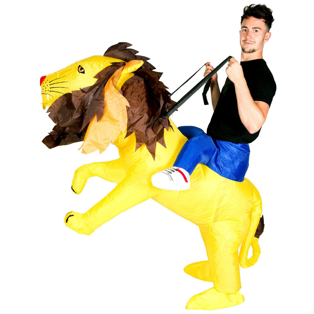 Rid på ett farligt lejon till maskeradfesten med hjälp av denna coola uppblåsbara lejon-dräkt! En supertuff lejon utklädnad som förvandlar dig till en riktigt häftig lejon-ryttare på nolltid. Se till att sticka ut ordentligt på maskeraden med hjälp av denna häftiga, uppblåsbara lejon maskeraddräkten.