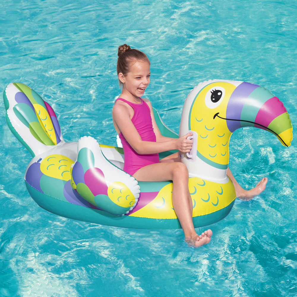 Rolig tukan fågel och flytmadrass för barn, perfekt till rolig vattenlek. Med ett uppblåsbart baddjur och badmadrass kan ditt barn ha massa skoj i vattnet och på stranden, en fin och rolig fågel och uppblåsbar badleksak till varma dagar. Med Bestway flytdjur och badmadrass får ni en skojig uppblåsbar flytleksak, perfekt för alla barn som gillar att bada.