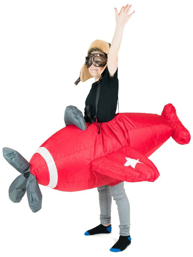Om ditt barn alltid drömt om att flyga ett flygplan högt upp i luften mot spännande äventyr så är denna uppblåsbara flygplans-dräkt det ultimata valet av utklädnad inför maskeraden! Den perfekta uppblåsbara maskeraddräkten för alla flickor och pojkar med pilot-drömmar. Ta plats bakom spakarna, lyft upp mot molnen och styr mot maskeradfesten!