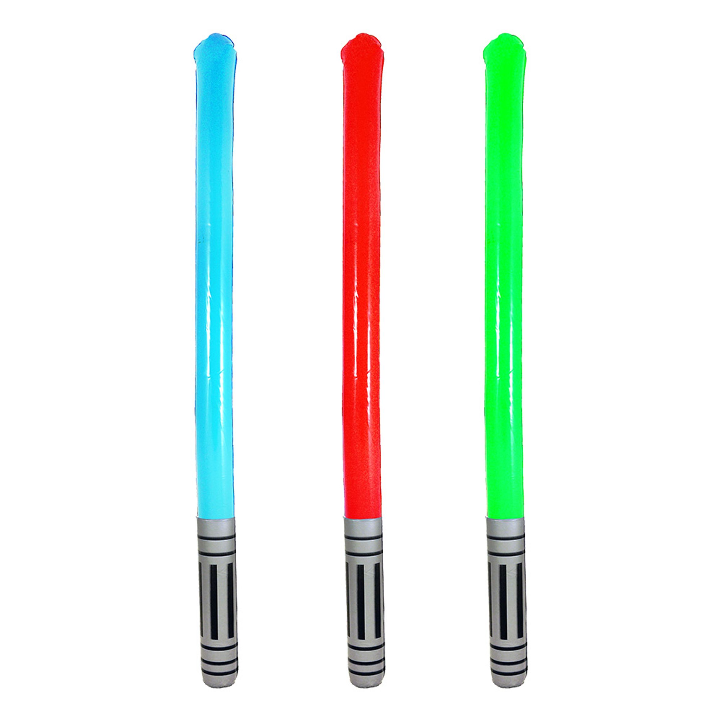Uppblåsbart Lasersvärd mäter ca 90 cm lång uppblåst och finns bland annat i färgerna blå, röd och grön.