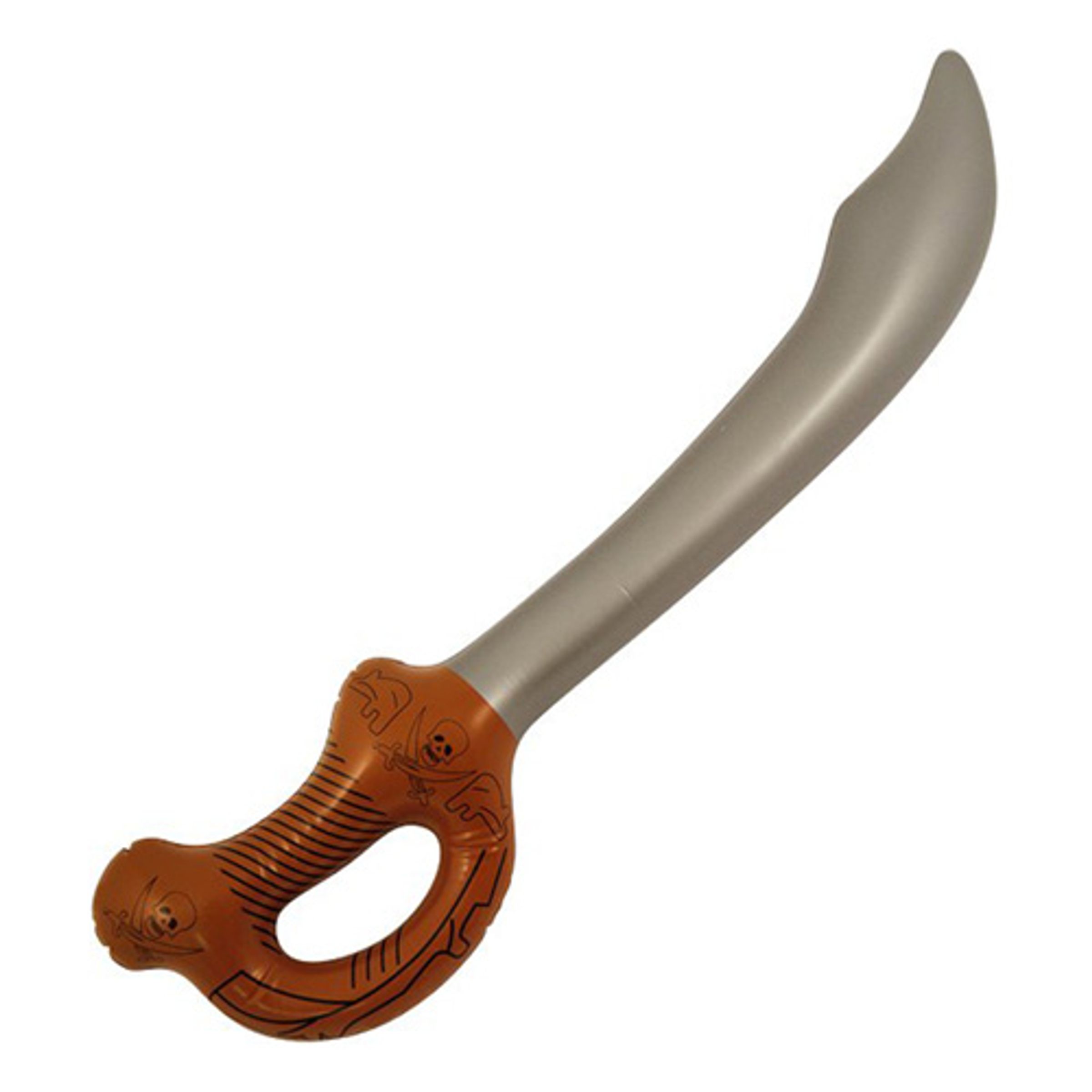 Uppblåsbart Piratsvärd är uppblåsbart svärd i grått och brunt. Svärdet är tillverkat i PVC-plast och det är 60 cm långt. Svärdet är inte uppblåst när det levereras.