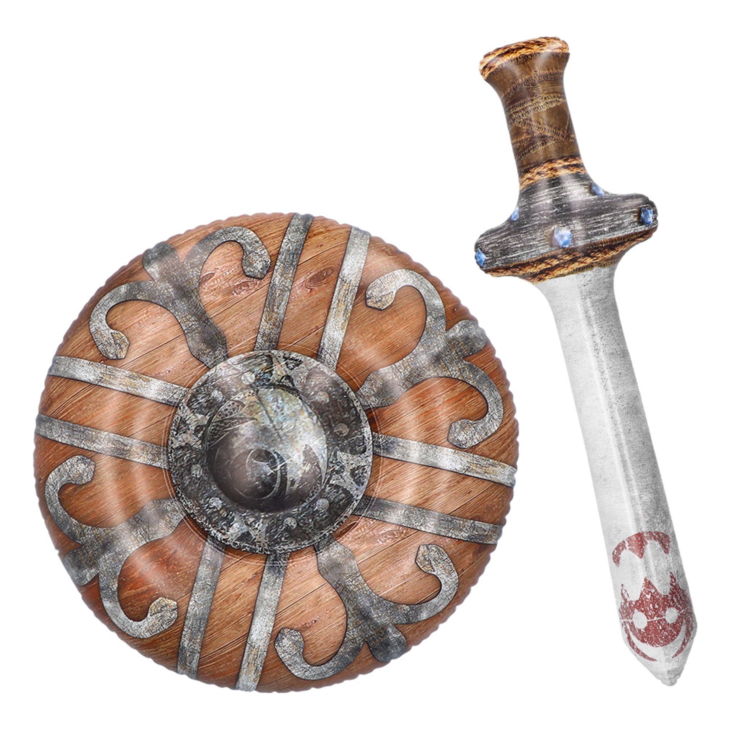 Uppblåsbart Svärd med Sköld mäter 58 cm och innehåller både verktyg för strid och skydd. Blås upp och ge dig ut i strid – äran väntar!