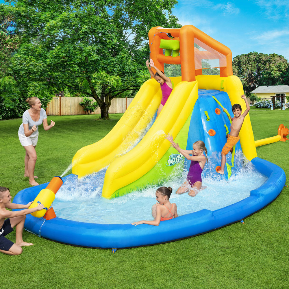 Låt barnen leka och skoja loss i ett uppblåsbart vattenland! Ett superkul vattenlekland med vattenkanon, klättervägg med rep och rutschkana, allt som behövs för vattenfyllda äventyr. Denna vattenlekplats blir en perfekt lekpool för varma och sköna sommardagar.