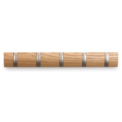 Väggkroken Flip är den perfekta lösningen om du har en trång hall. Den har 5 st utfällbara krokar och finns i två olika utföranden, målat eller omålat trä (bambu), med metallkrokar i borstad nickelplätering.