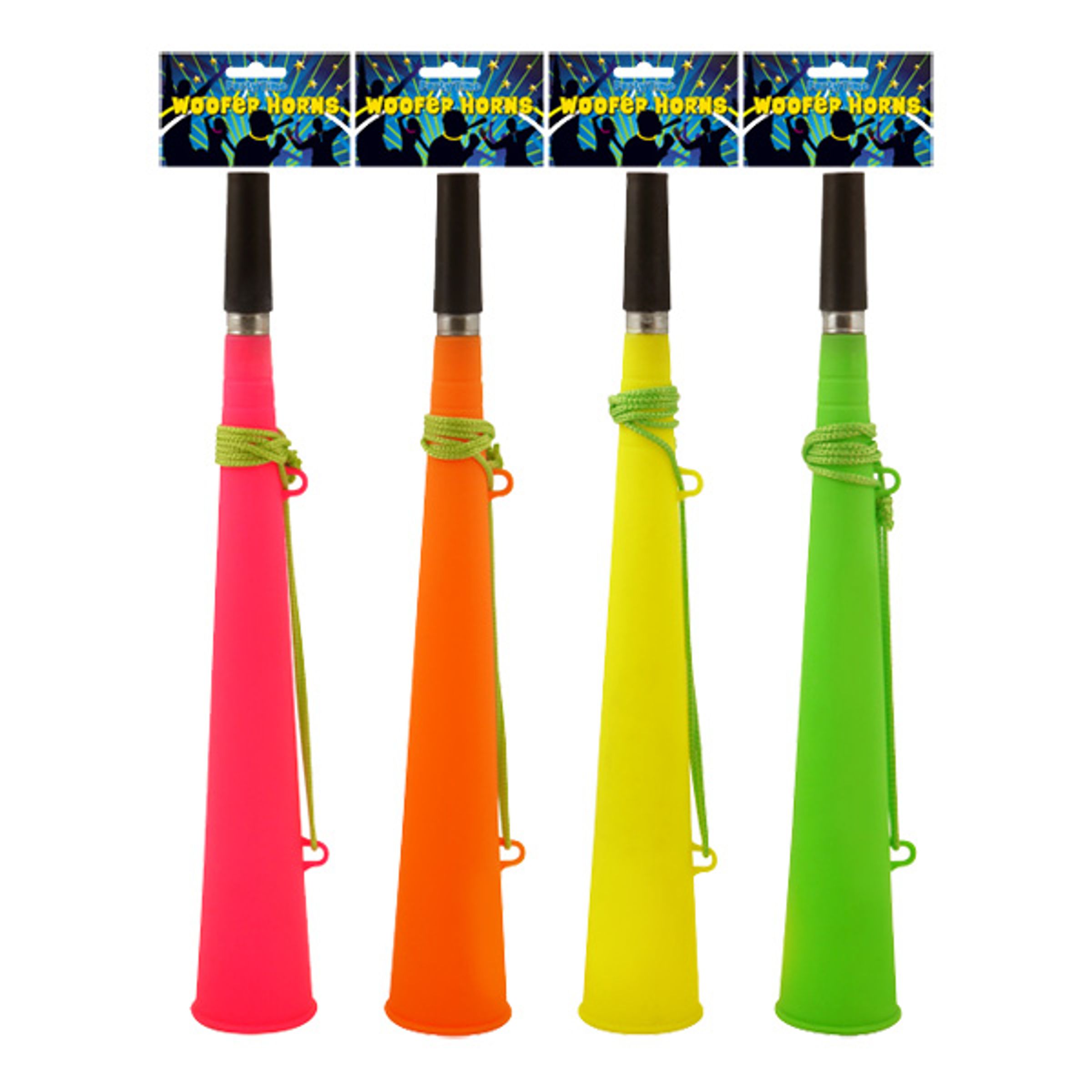 Tuuut! Nu kan du inte bara höras över hela festlokalen, nu kan du även synas extra mycket i folkmassan när du blåser i detta UV-reaktiva horn!