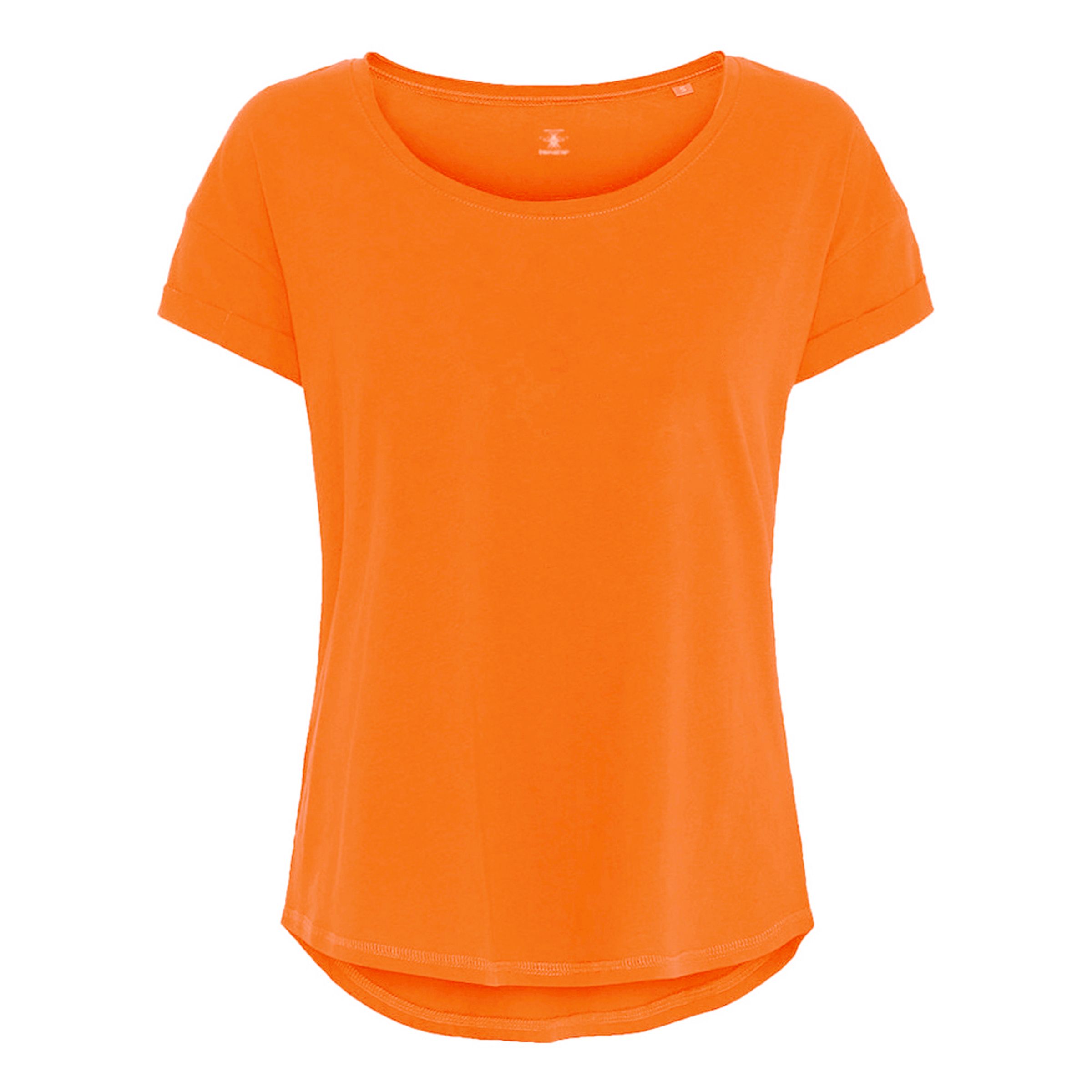UV Neon Orange Dam T-shirt kommer i storlekarna Small, Medium, Large och X-Large för damer. T-shirten reagerar på UV-ljus och lyser upp i mörkret. Följ tvättinstruktioner som står på tvättlappen.